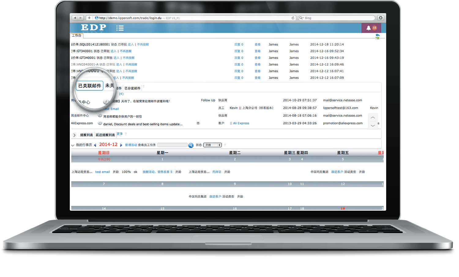 通過系統的無處不在的聯絡活動,業務人員、主管可以隨時對郵件,潛在客戶,客戶,聯系人等進行統一跟進提醒,并與行事歷緊密整合,完全杜絕了跟進不及時或者業務疏忽導致詢價郵件未及時處理,客戶流失。