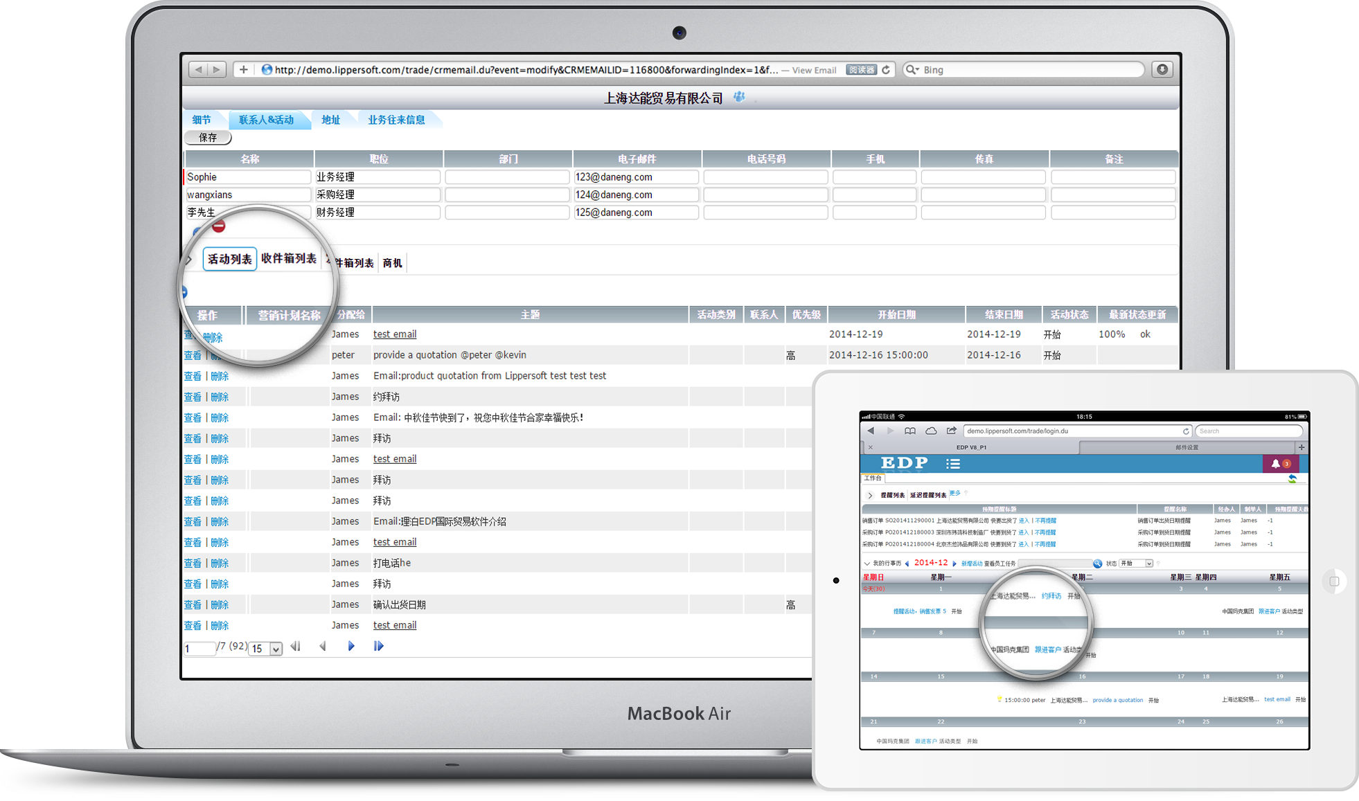 專業支持iPhone, iPad,Android,Window 8,Window 8 RT,WP智能手機和平板電腦 , 支持英文 , 中文簡體 , 繁體界面 , 基于 B/S 架構的外貿客戶關系軟件。