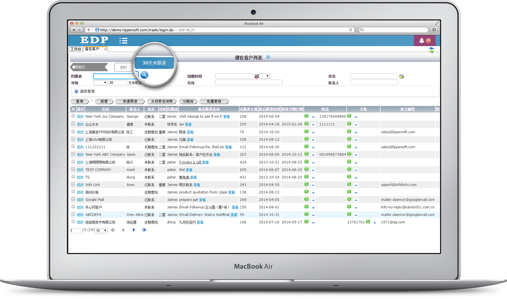 為了避免業務人員頭緒多,系統顯示各個潛在客戶未跟進天數,最近聯系情況, 避免業務人員跟進斷檔。